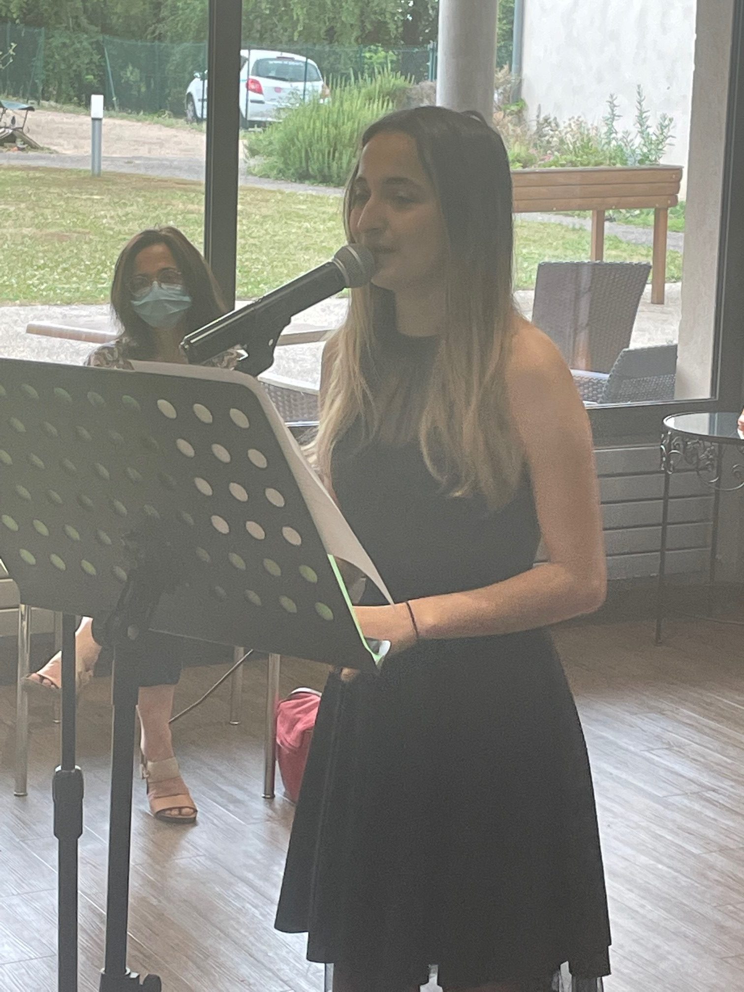 Est une jeune artiste qui nous a fait voyager à travers le temps avec son répertoire musicale.
