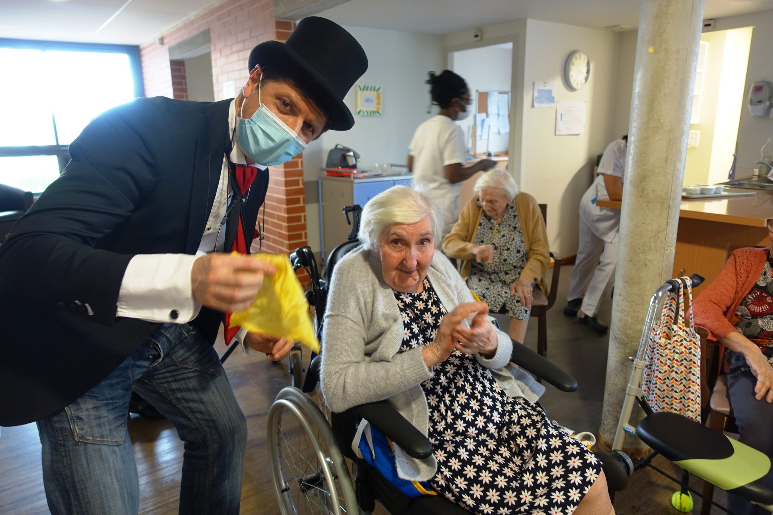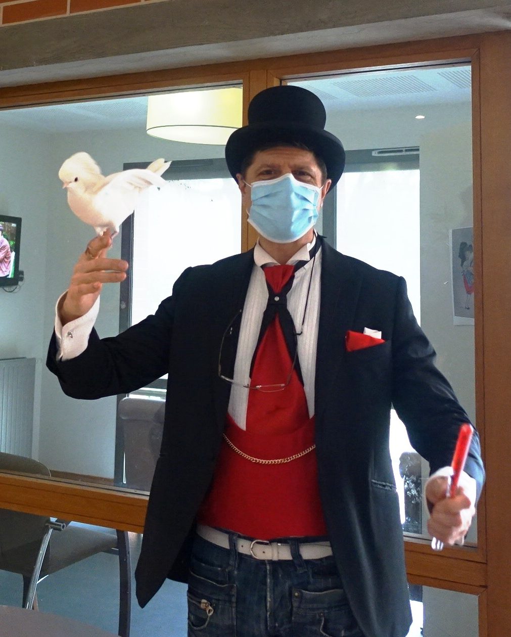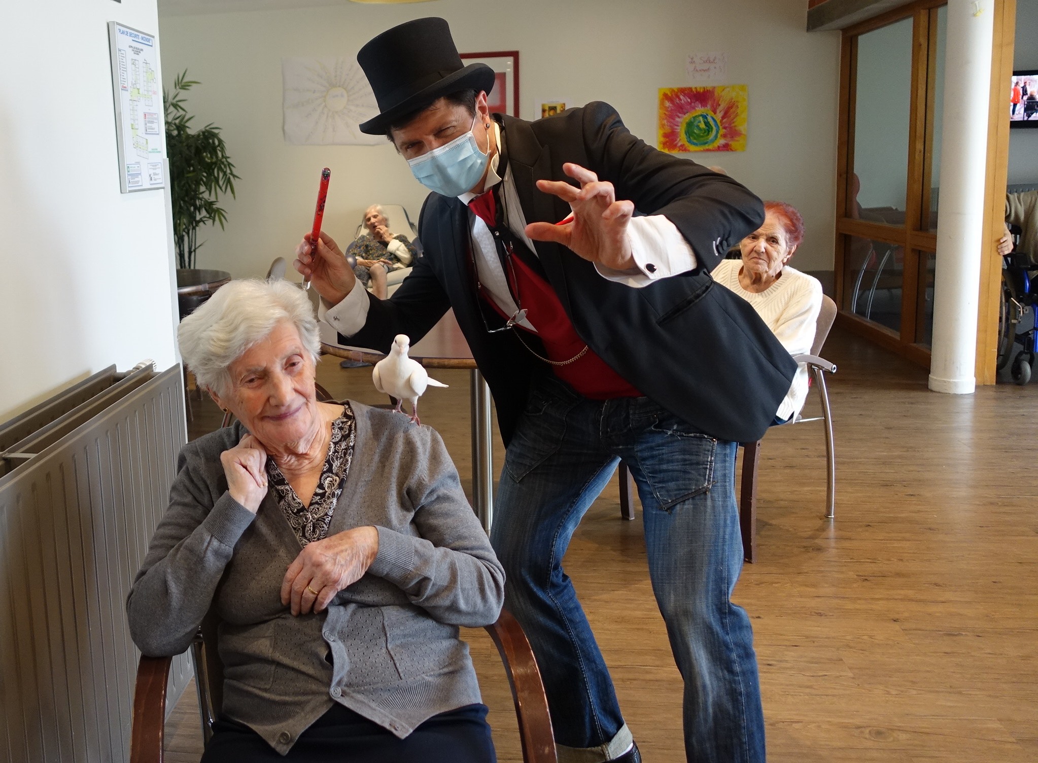 Durant l’après-midi, nous avons accueilli le magicien Rino Baldi qui a réalisé un spectacle dans chaque unité : tours de magie et de passe-passe, présence d’une colombe… Nous n’avons toujours pas réussi à comprendre les numéros de magie…