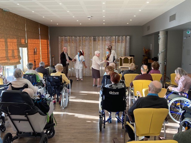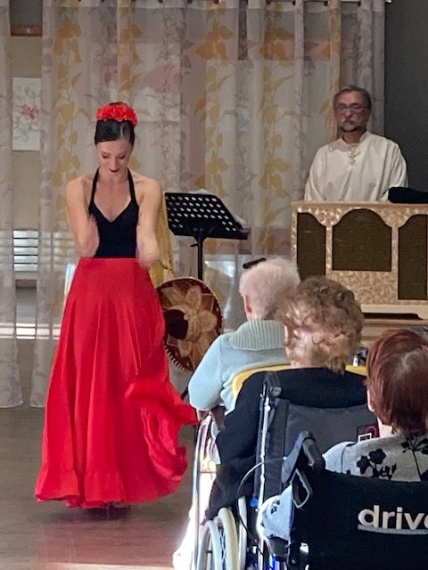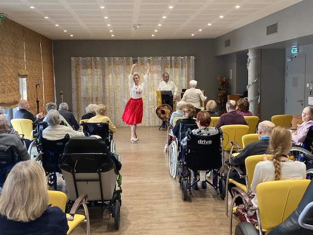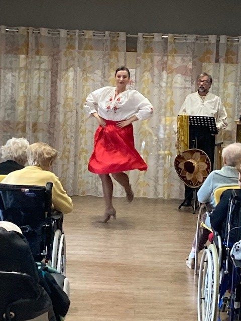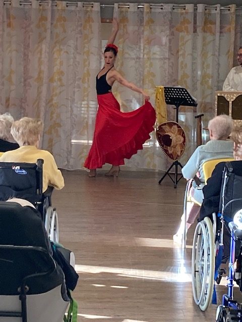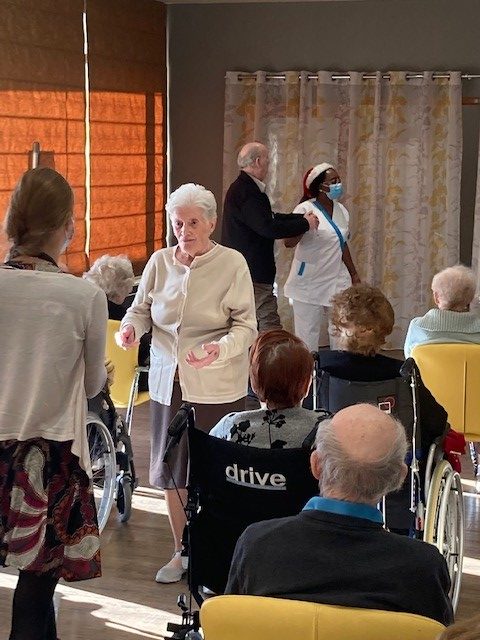 Ils ont pu profiter d’un spectacle » Tour du Monde » : Danses, musiques et chants Live de la « Compagnie Hormé » , avec Audrey et son papa, en salle tournesols. Les résidents étaient enchantés. Puis, un goûter de Noël a été servi dans les unités respectives avec les équipes pluridisciplinaires.