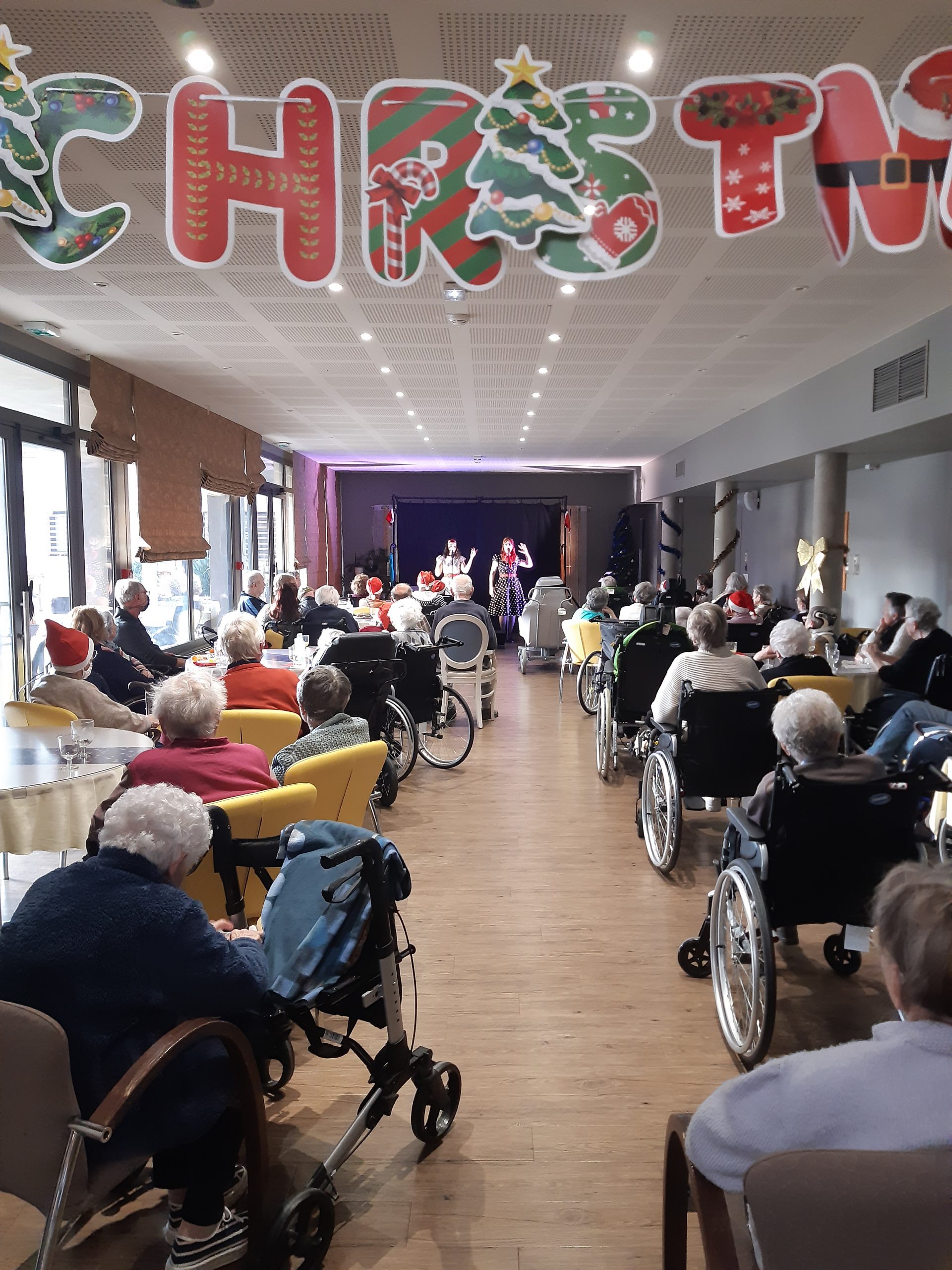 Nous avons reçu un duo d’artistes féminines venues proposer le spectacle la « Java s’en va » avec au programmes : des chants, danses, changement de costumes.