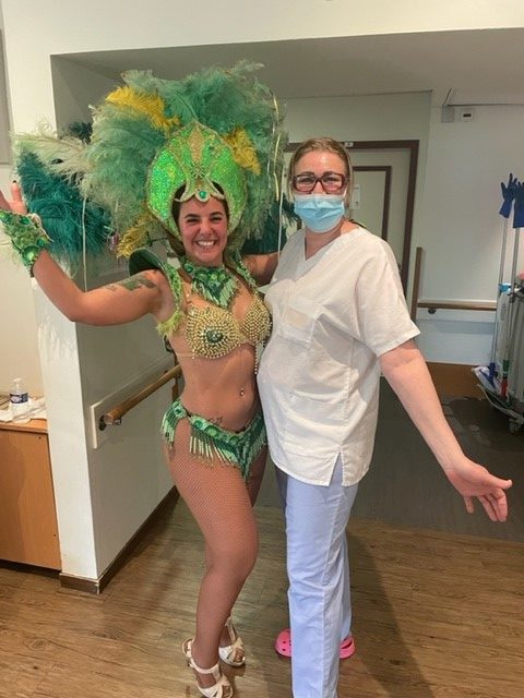 Nous avons eu la chance de recevoir une danseuse Brésilienne, en costume, lors du repas à thème du mois le mercredi 23 février ! Les résidents et les équipes ont été ravis et certains ont pu esquisser quelques pas de danse brésilienne !