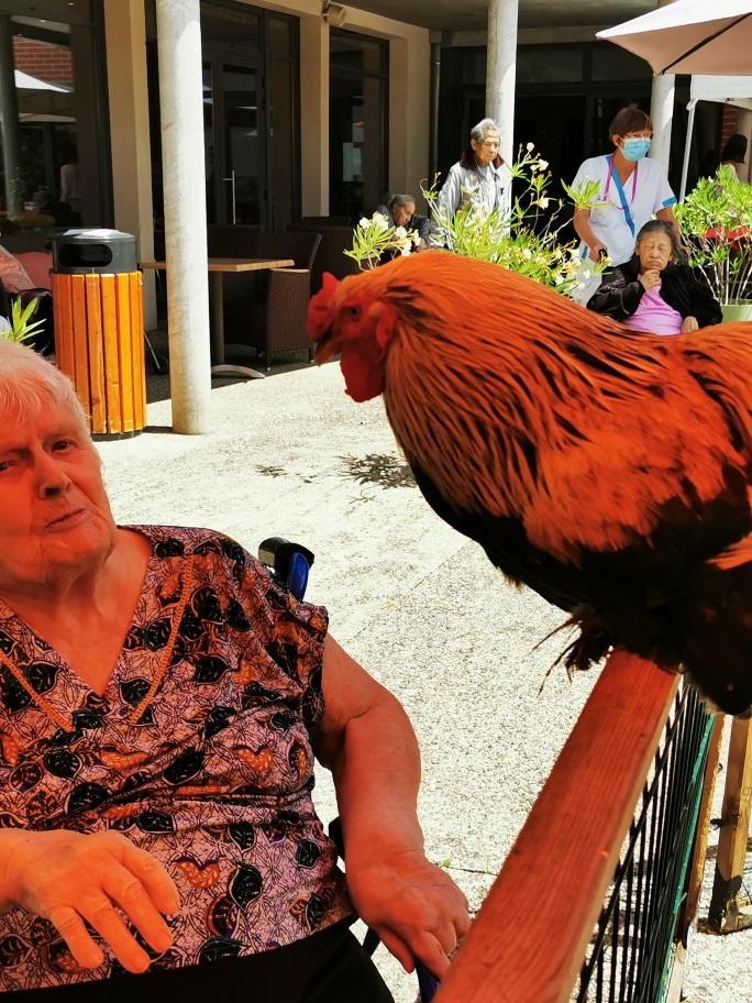 - La ferme de Alain & Bénédicte avec leurs animaux était présent pour animer aussi cette fête. Les poussins & lapins ont pu rendre visite aux résidents restés dans leur chambre pour immortaliser la journée également ;
