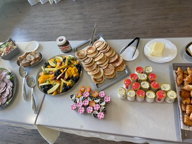 Mercredi 5/10/2022 : de 10h45 à 12h30, nous avons organisé un Brunch en salle Tournesols pour une vingtaine de résidents. Sucré, Salé, notre équipe de cuisine avait tout mis en œuvre pour que nos résidents se régalent !
