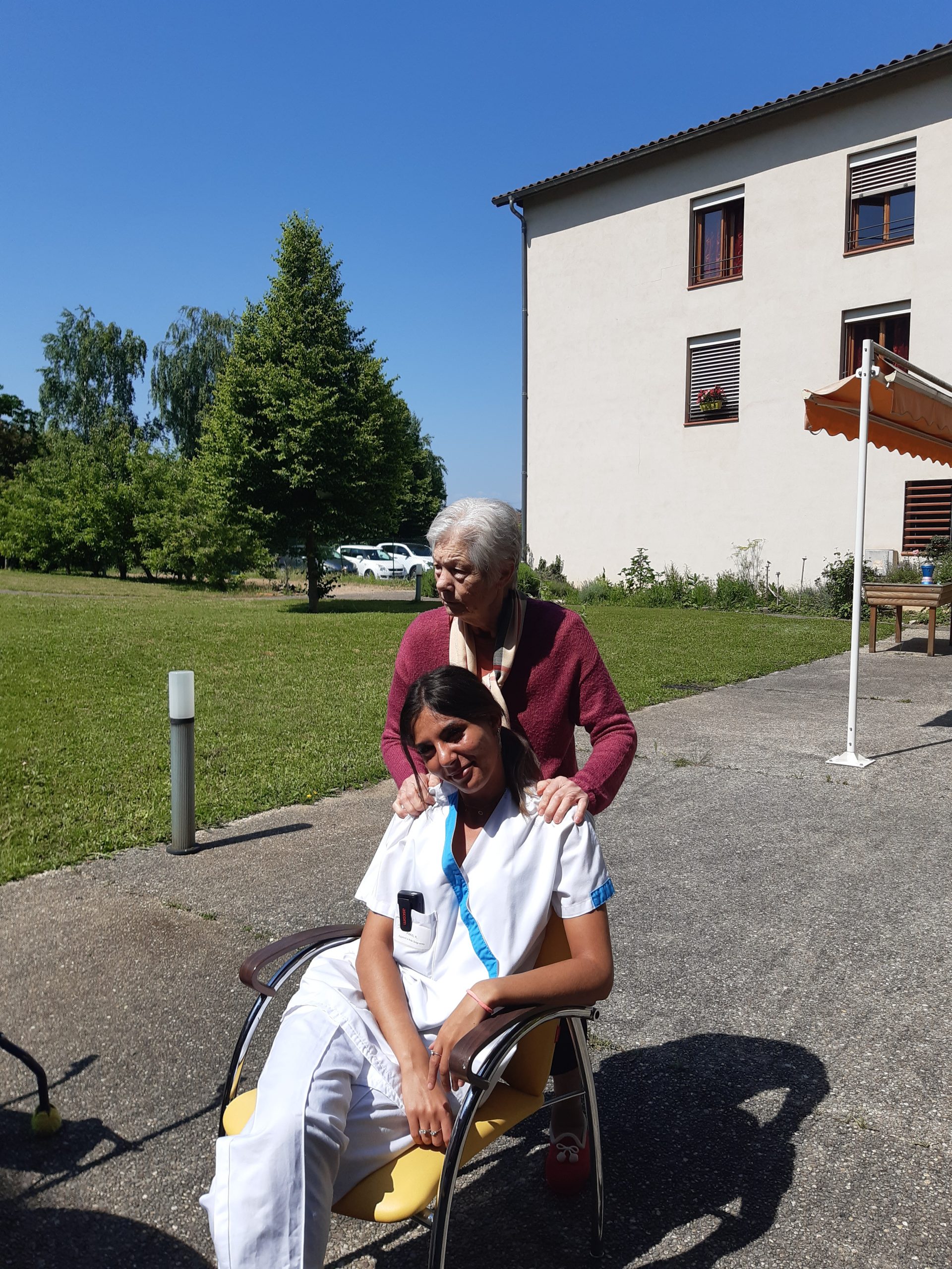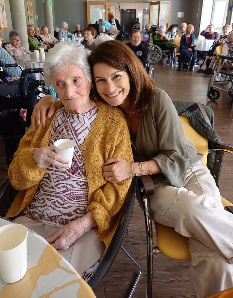 - L’organisation d’une rencontre intergĂ©nĂ©rationnelle avec la Crèche Calincadou : lundi 22 mai matin, trois rĂ©sidentes accompagnĂ©es de Natacha S. et Lola se sont rendues au centre sur Genas. Elles ont pu Ă©changer avec ces jeunes sujets, lire et chanter.