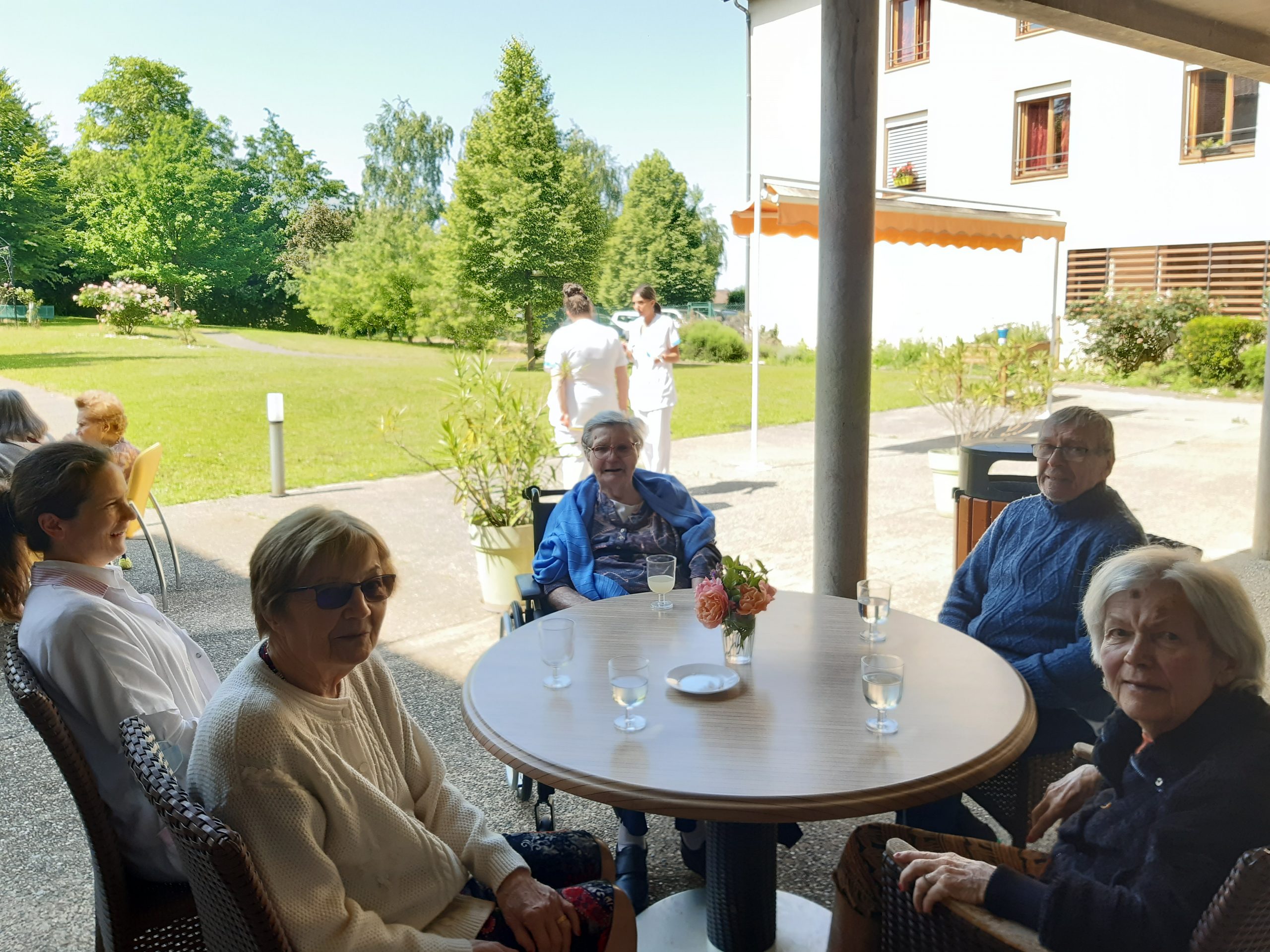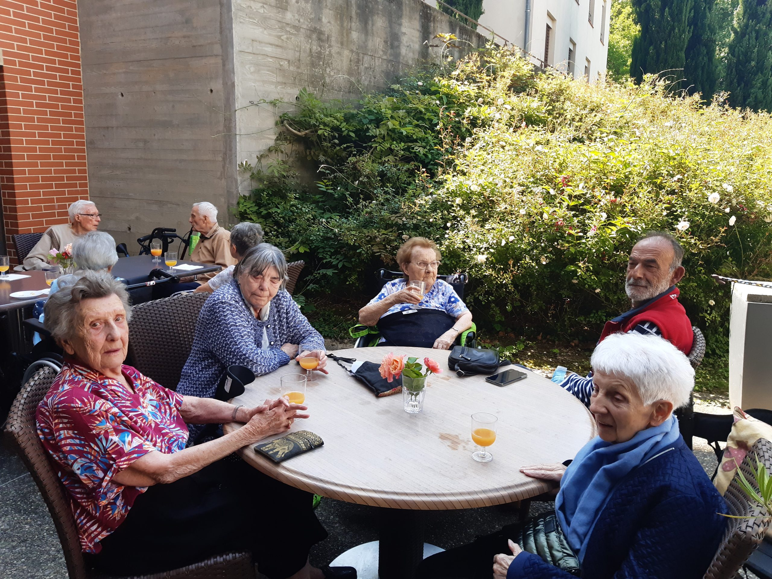 - Vendredi 26 mai, nous avons fait un deuxième « ApĂ©ritif festif », activitĂ© en place depuis le mois d’avril pour l’arrivĂ©e des beaux jours. Nous avons pu nous installer dehors et profiter du soleil autour soit d’une boisson anisĂ©e, soit d’un cocktail punch.
