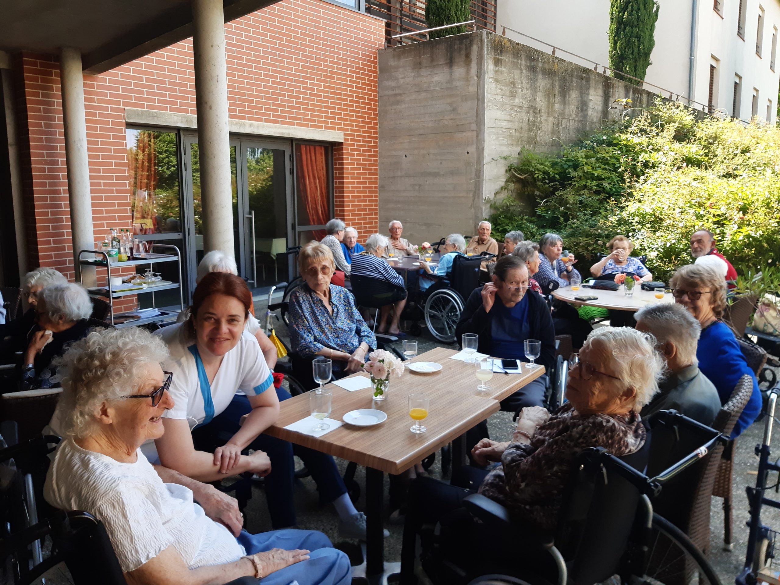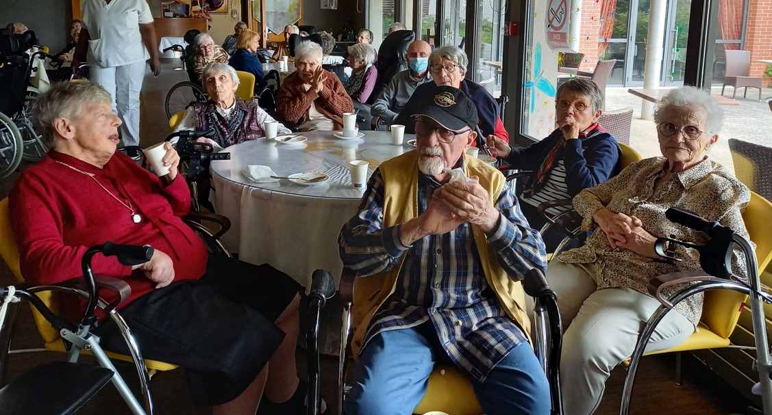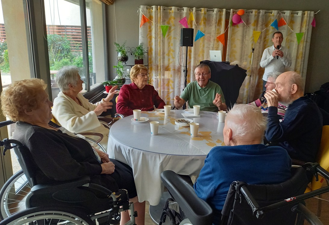 - La fête des anniversaires avec Jean-Pierre Genette, chanteur et accordéoniste. Cette intervention a été très appréciée de nos résidents, qui se sont fortement mobilisés pour ce temps là .