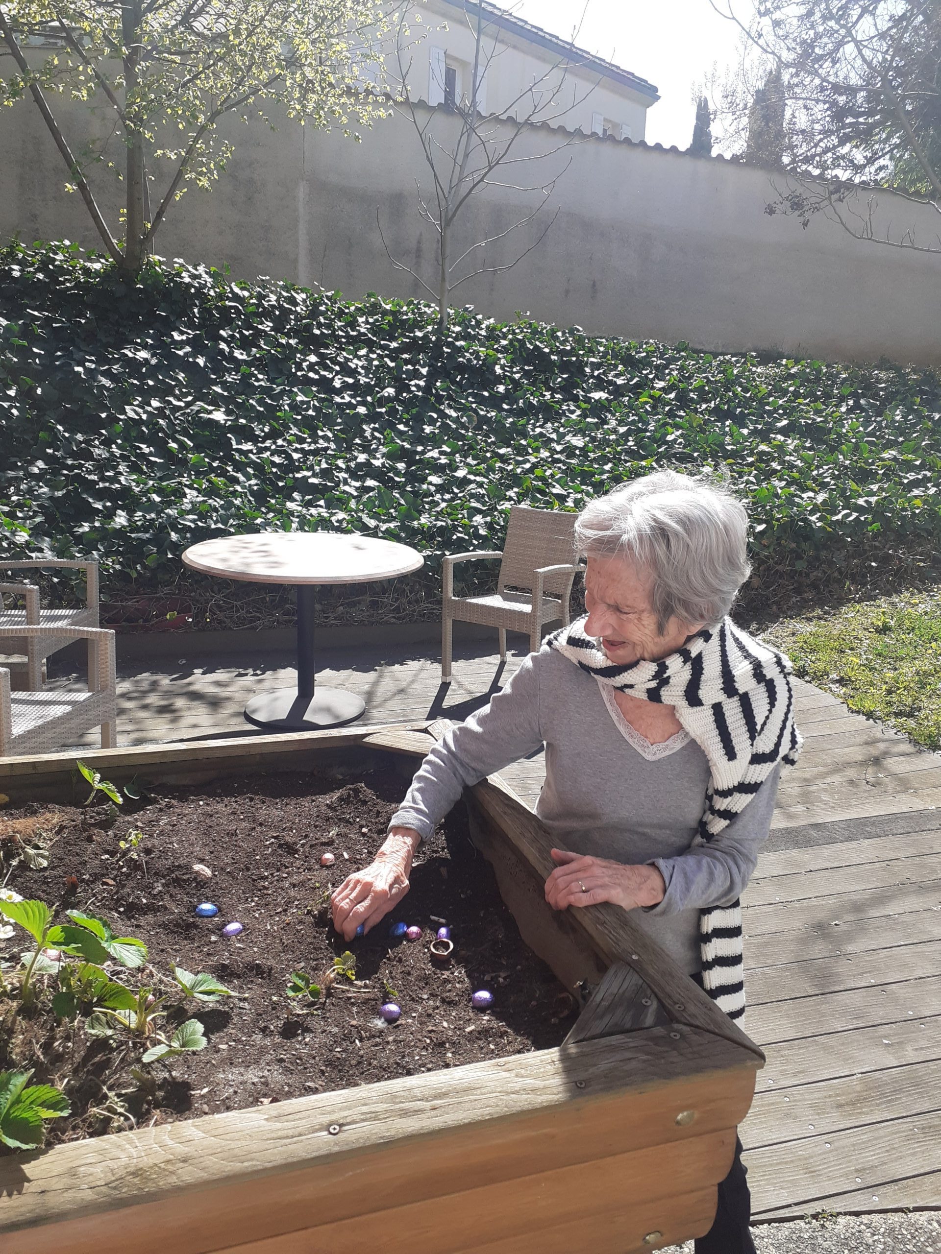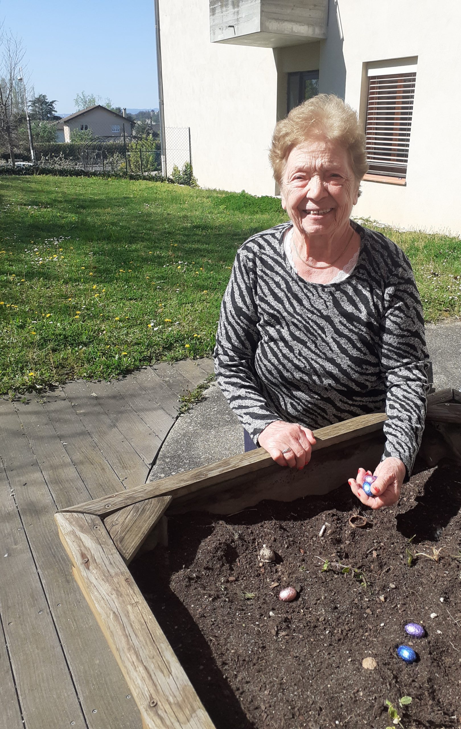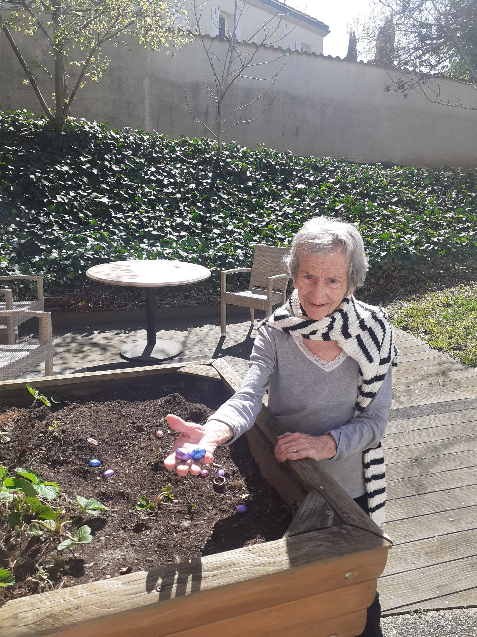 Chaque résident a reçu un petit paquet de chocolats pour ce week-end Pascal. Le week-end étant ensoleillé, les résidents ont également participé à une chasse aux œufs improvisée, organisée par nos soignantes au sein des jardins. Cela a rappelé de nombreux souvenirs d’enfance aux participants !