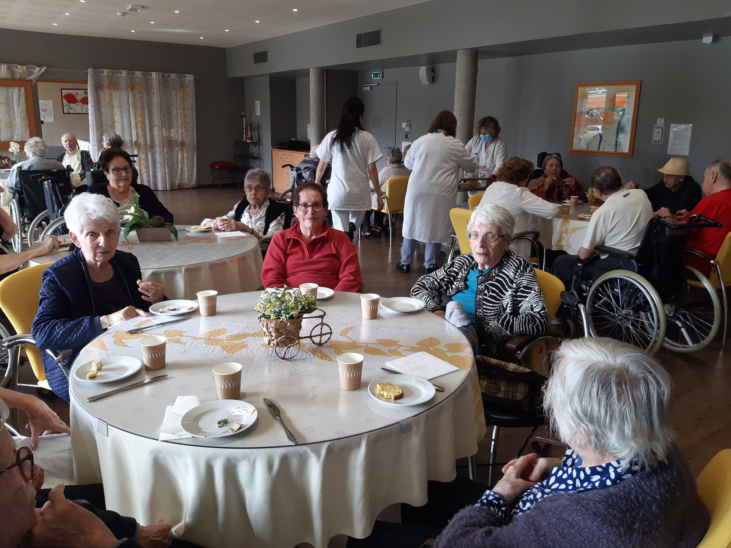 • Mercredi 6 Octobre : Dégustation Pain, vin & Fromages en partenariat avec la fromagerie de Genas .  Les résidents ont pu déguster 5 sortes de fromages, 5 sortes de pain et un verre de vin à 15h en salle Tournesols ; le tout, encadré par le personnel administratif & Geneviève .